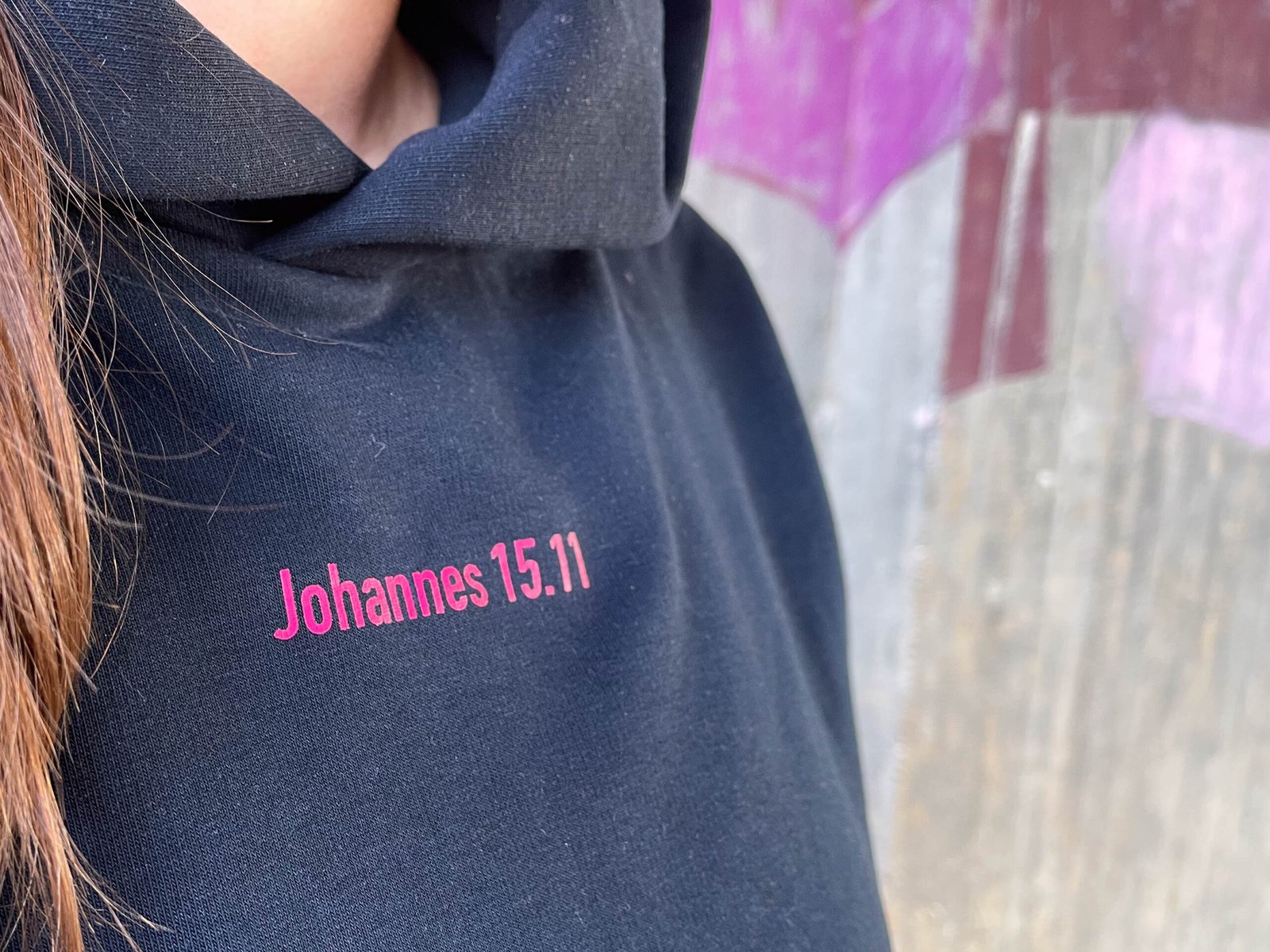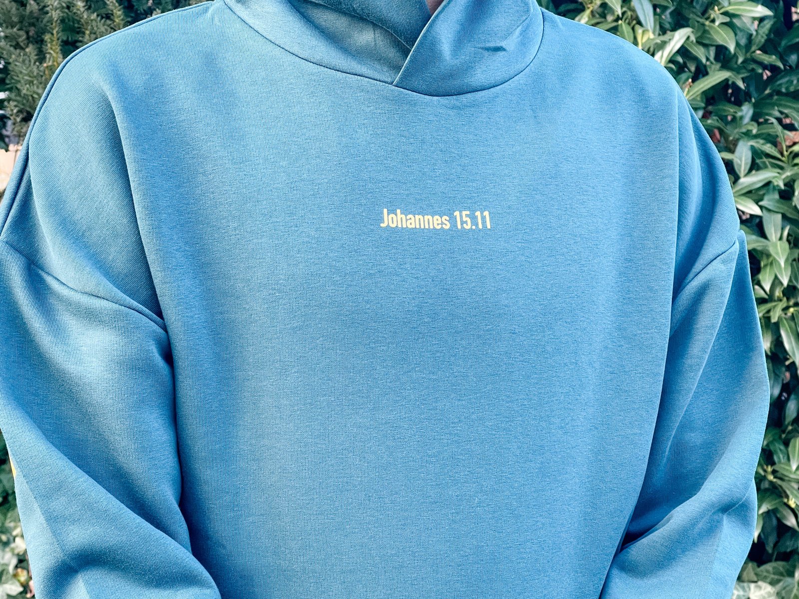 Inspiriert ist der Hoodie vom Bibelvers Johannes 15,11: