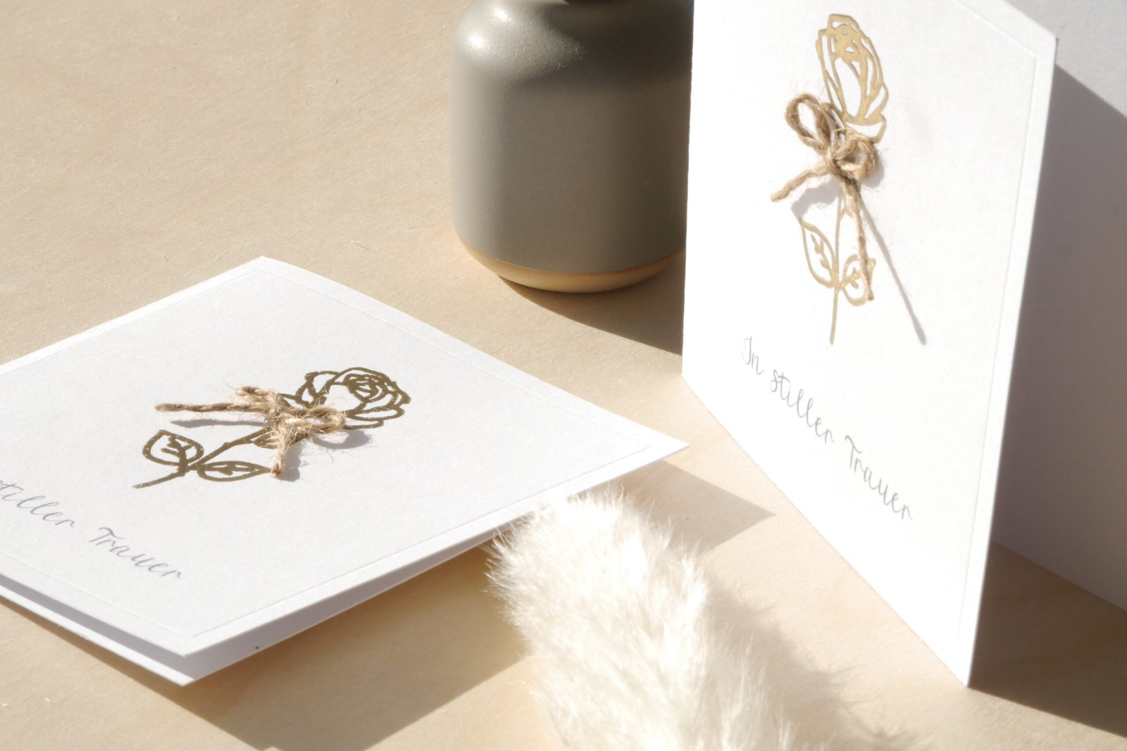 Eine stilvolle Karte, die deine Anteilnahme auf würdevolle Weise zum Ausdruck bringt.